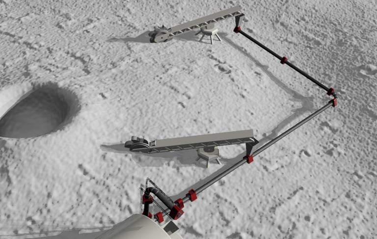 ● Conveying regolith from excavation zone to processing facility